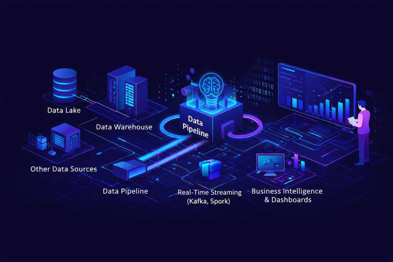 Build the data infrastructure that powers intelligent decision-making. From data lakes and warehouses to ML pipelines and real-time analytics — we turn raw data into actionable intelligence.